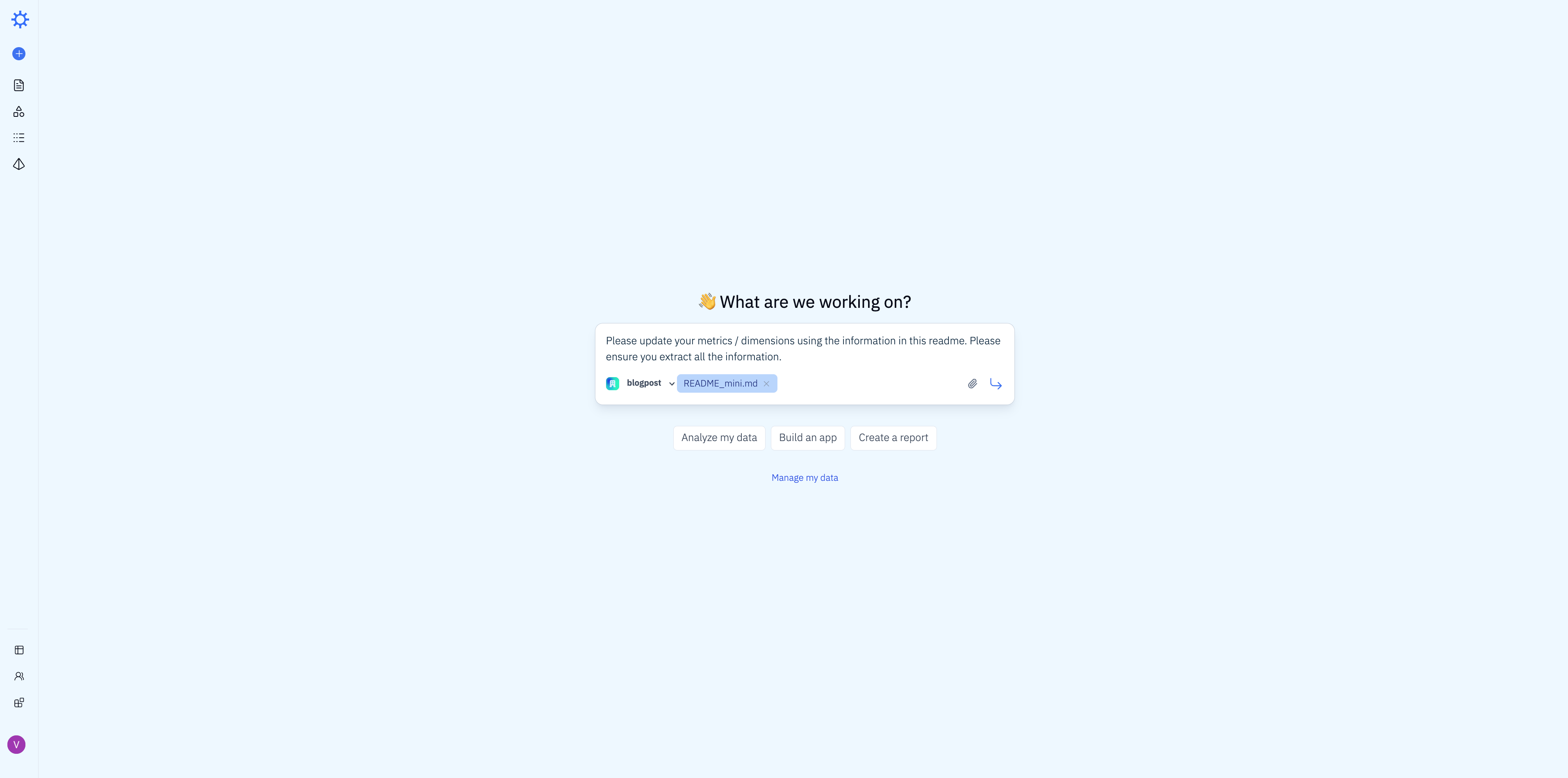 To train Iris, we uploaded the dataset README and sent it with the same prompt we used with Snowflake: "Please update your metrics / dimensions using the information in this readme. Please ensure you extract all the information."